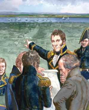 Under orders from the Secretary of Navy, the flotillamen scuttled their gun barges in the face of overwhelming odds, Barney and his flotillamen marched to Bladensburg and won British respect with their determined defense of the road to the Federal City.