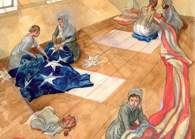 In 1813 she labored for seven weeks with her 13-year-old daughter, Caroline, two nieces, 13-year-old Eliza Young and 15-year-old Margaret Young, a 13-year-old African-American indentured servant, Grace Wisher, and possibly her mother, Rebecca Young, who had taught her the trade. They pieced together strips of loosely woven English wool bunting then laid the whole flag out on the expansive floor of a brewery near Mrs. Pickersgill’s Pratt Street house, now the Star-Spangled Banner Flag House Museum.