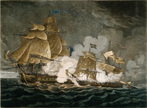 When H.M. frigate Leopard attacked U.S. frigate Chesapeake in 1807, after it refused to allow a search for deserters, Americans became outraged and the event helped fuel the call for war.